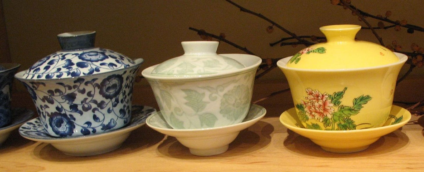A simple alternative that works just as well is a gaiwan, which allows the tea leaves to steep in the drinking cup (though you can decant it, if you prefer). While this is part of a gongfu tea set, you can just use the gaiwan without much else. Honestly, if my gongfu tea set wasn’t a travel set, which makes setup and cleaning quick and straightforward, I would probably only use a gaiwan. I’ll probably end up buying one.